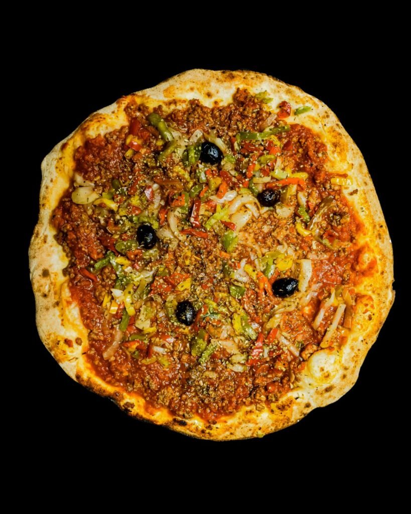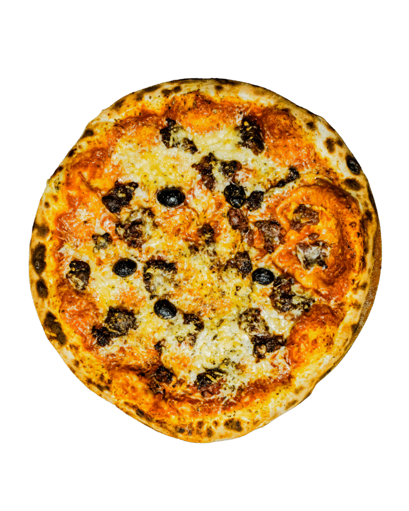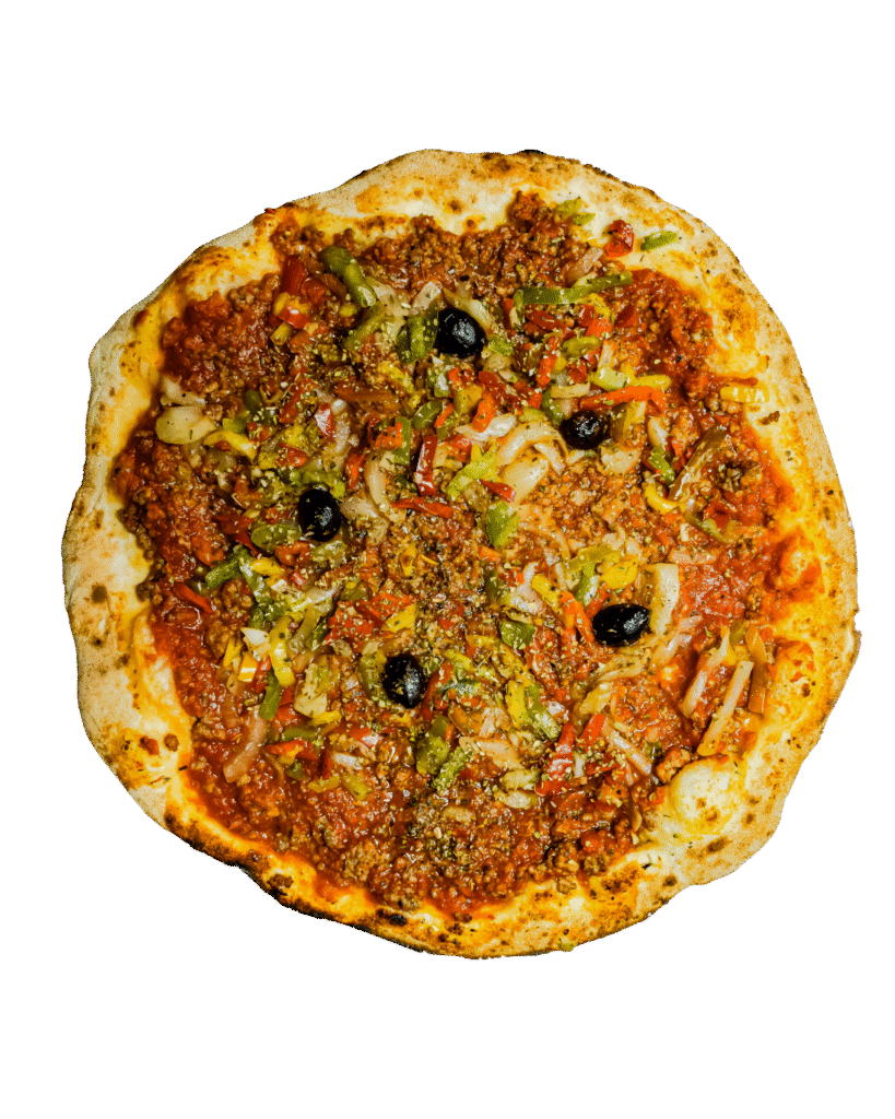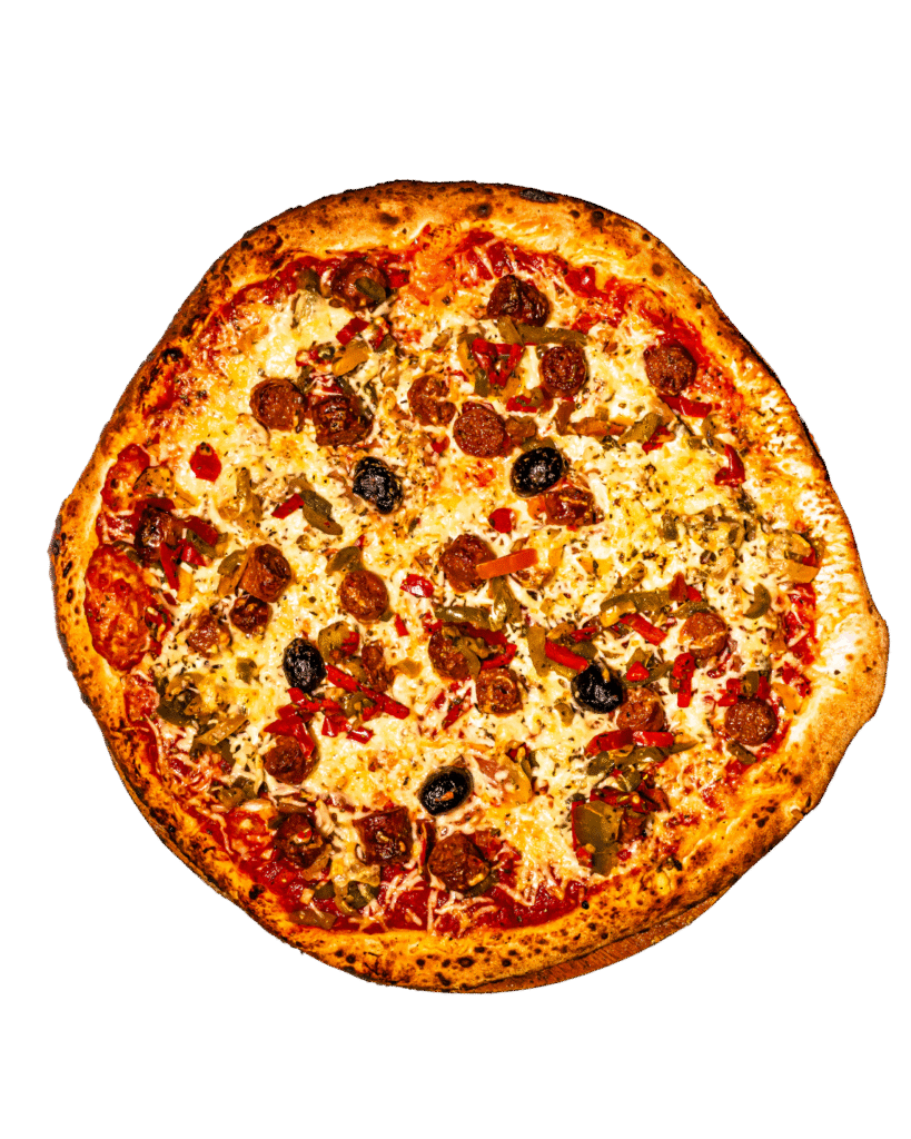 tomate, oignons, chorizo, poivrons, mozzarella, ail