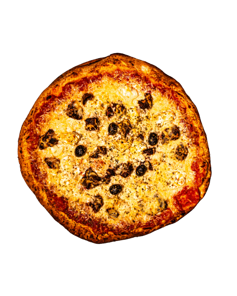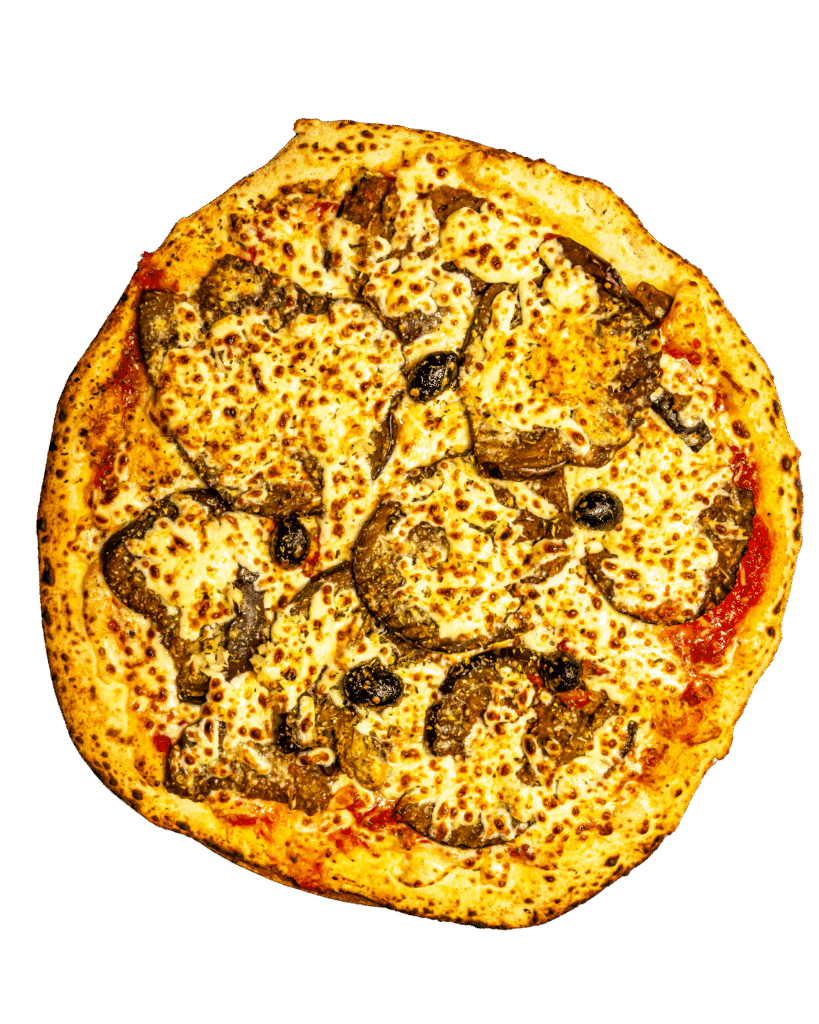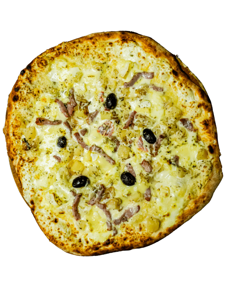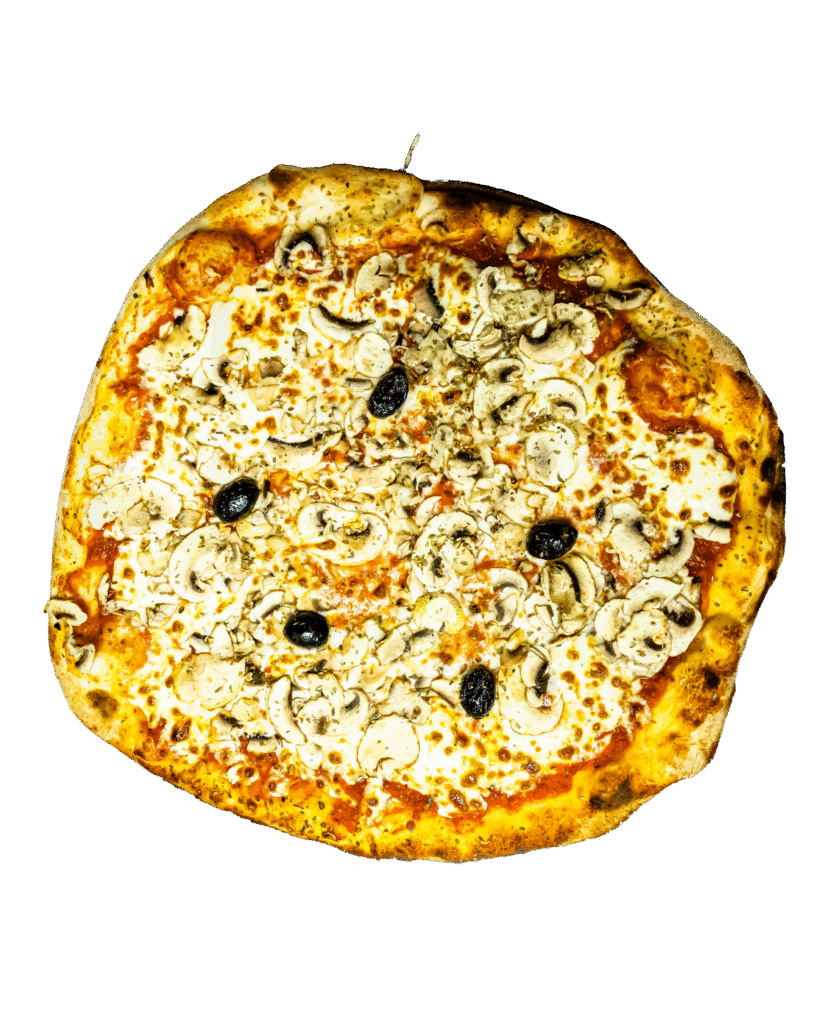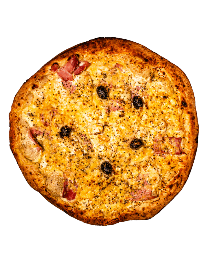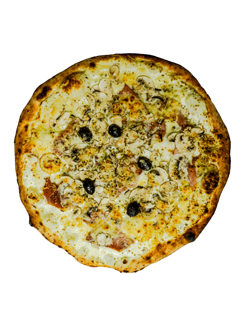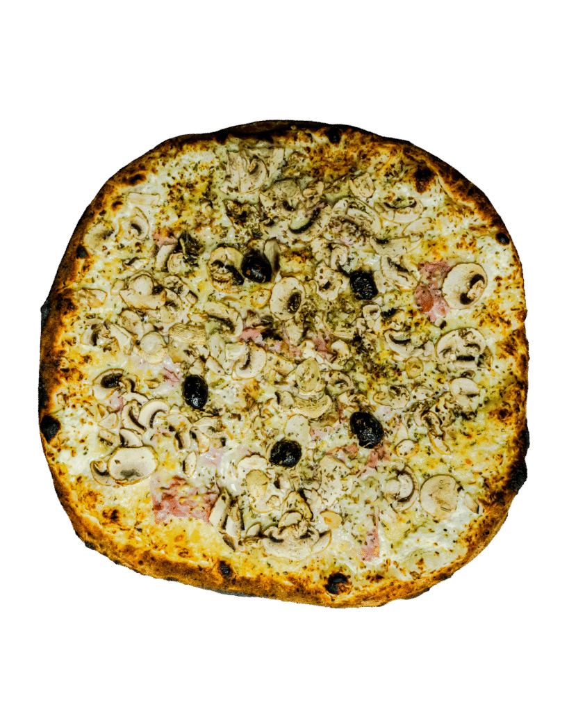 Crème, mozzarella, parmesan, jambon cru, champignons, huile truffe