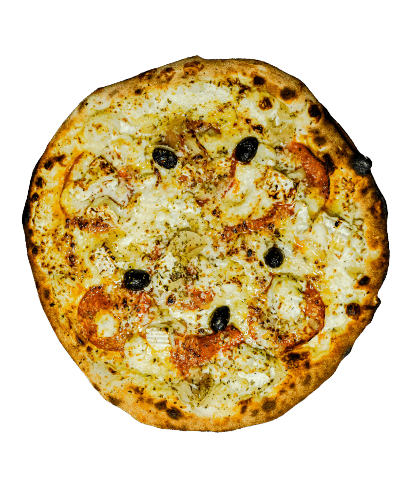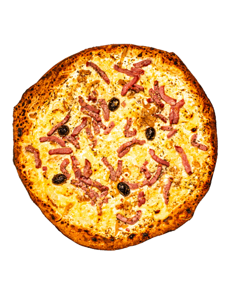 crème, camembert rustique, lardons, mozzarella