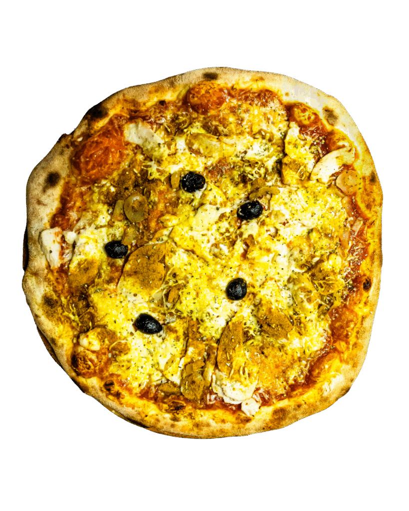tomate, poulet, curry, oignons, mozzarella